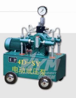4D-SY200/3、4D-SY150/5型电动试压泵,是四柱塞,往复移动式试压泵,专供容器,管道设备,锅炉系统,阀门以及其它机械,仪器的产品零件,作水压或油压密封试验,强度试验,本泵适用于各试验室、工矿施工现场。