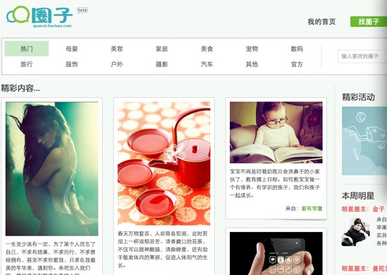 3月27日消息,淘宝网推出兴趣图谱网站圈子(quanzi.taobao.com),目前处于测试状态。