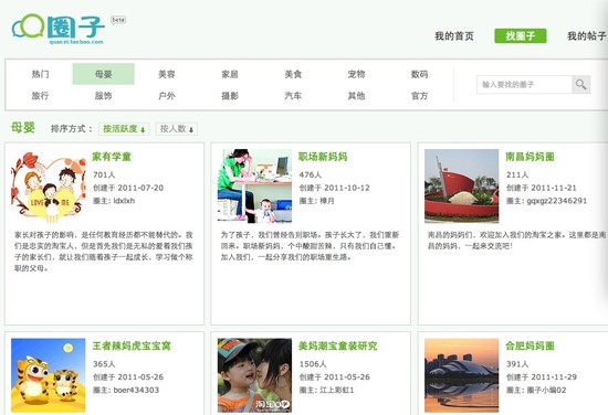 圈子网站布局类似Pinterest,但产品本身更类似轻博客。基于兴趣爱好,用户可以创建圈子、搜索圈子。对于用户分享的内容,可以回复和“赞”。